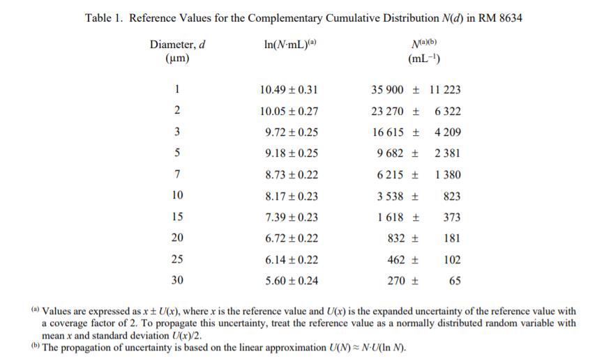 NIST 參考值是未經(jīng)認(rèn)證的值,它是基于可用數(shù)據(jù)對(duì)真實(shí)值的最佳估計(jì);然而,該值不符合 NIST 的認(rèn)證標(biāo)準(zhǔn),并且提供了相關(guān)的不確定性,可能僅反映測(cè)量精度,可能不包括所有不確定性來源,或者可能反映多種分析方法之間缺乏足夠的統(tǒng)計(jì)一致性 [1,2 ]。表 1 和表 2 中提供了粒度分布和形態(tài)參考值。這些值在計(jì)量上可溯源至使用的測(cè)量方法和校準(zhǔn)程序