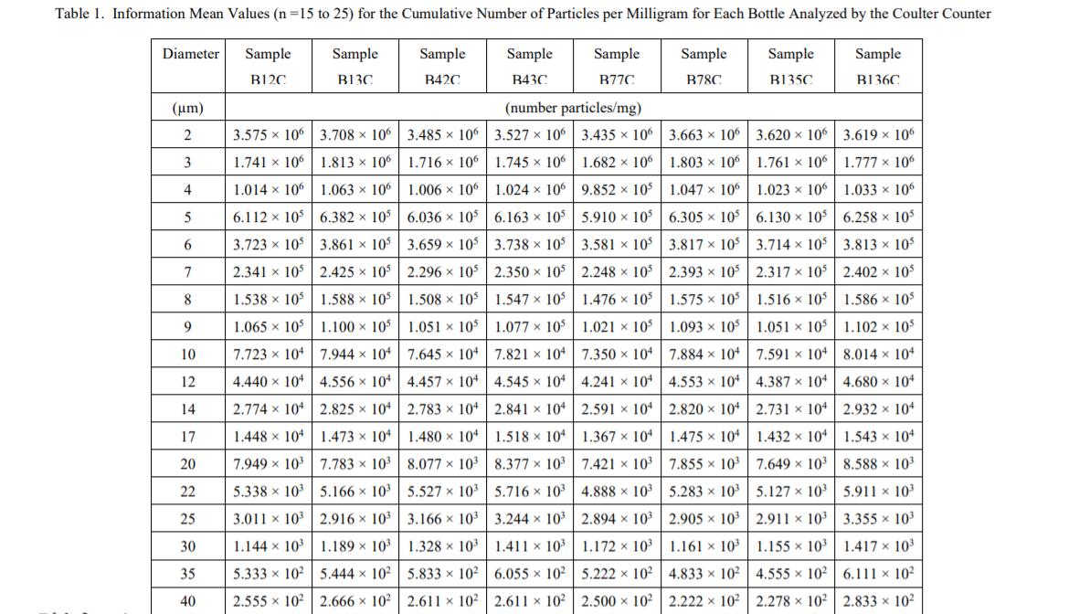 一個(gè) RM 8631b 單元由 20 克天然礦物粉塵組成,該礦物粉塵成分不均勻,尺寸多分散。RM 8631b 可與國(guó)際標(biāo)準(zhǔn)化組織方法 ISO 11171:2016 液壓流體動(dòng)力 - 液體自動(dòng)粒子計(jì)數(shù)器的校準(zhǔn) [2] 結(jié)合使用。使用此方法并遵循本報(bào)告中描述的“使用說(shuō)明",RM 8631b 在每個(gè)直徑的顆粒濃度將通過(guò)根據(jù) NIST 標(biāo)準(zhǔn)參考材料 2806x、液壓油中的中等測(cè)試粉塵 (MTD) 進(jìn)行校準(zhǔn)來(lái)確定。